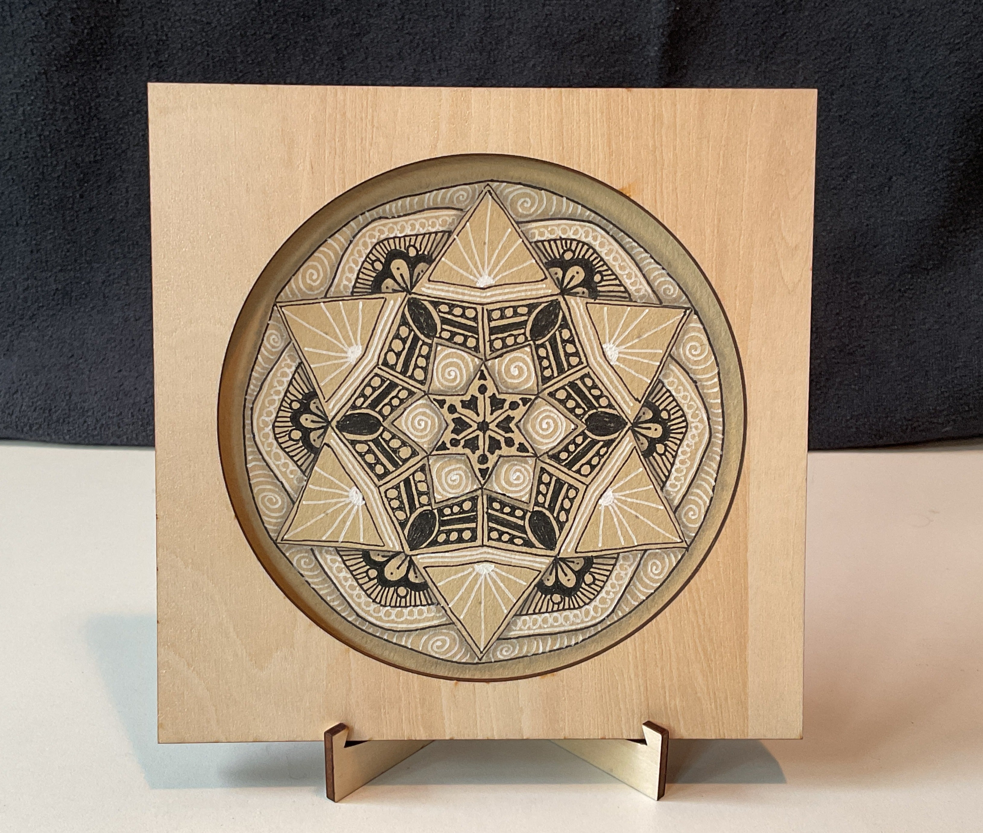 Handmade Zentangle® Zendala Frame – 5.5" Wood Display for 4.5" Tiles