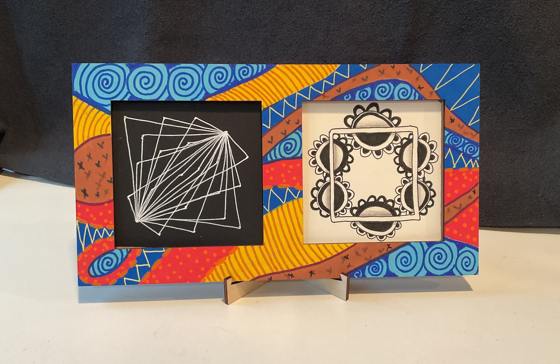 Handmade Zentangle® Square Duo Frame – 9.5" Wood Display for Two 3.5" Tiles